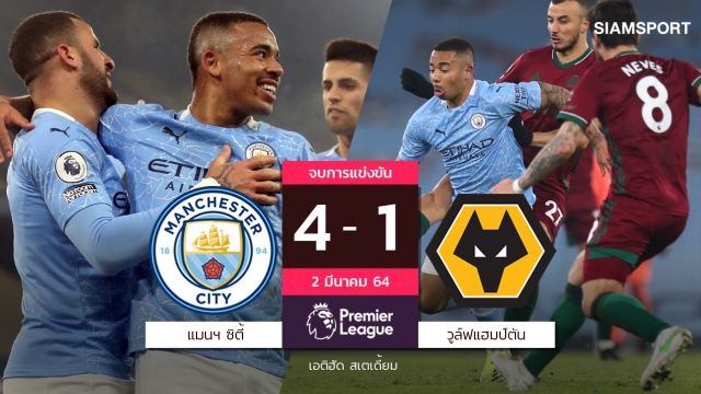 กาเบียล เชซุส เหมาคนเดียวสองประตูก่อนพา "เรือใบสีฟ้า" ไล่ถล่ม วูล์ฟแฮมป์ตัน ในช่วงท้ายเกม...