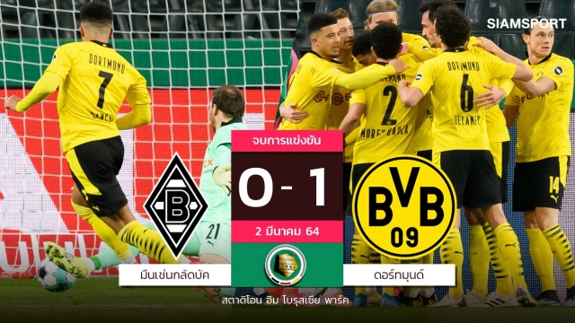 โบรุสเซีย ดอร์ทมุนด์ โชว์ฟอร์มยอดเยี่ยมหลังบุกไปอัดเจ้าถิ่น มึนเช่นกลัดบัค หวุดหวิด 1-0 เ...