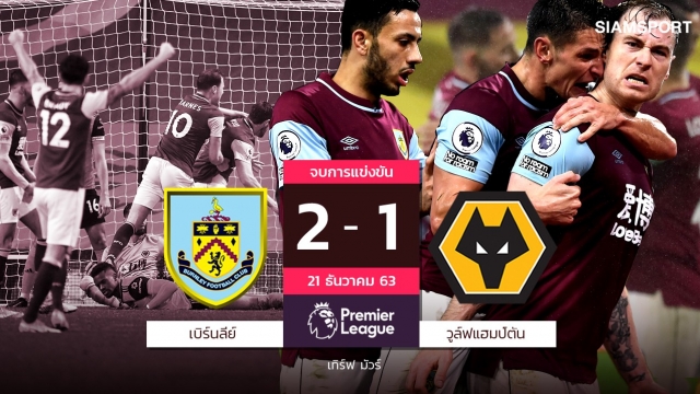 เบิร์นลี่ย์ ทำสถิติไม่แพ้ทีมใดเป็นเกมที่ 4 ติดต่อกันหลังเปิดบ้านไล่บดเอาชนะ วุล์ฟแฮมป์ตัน...