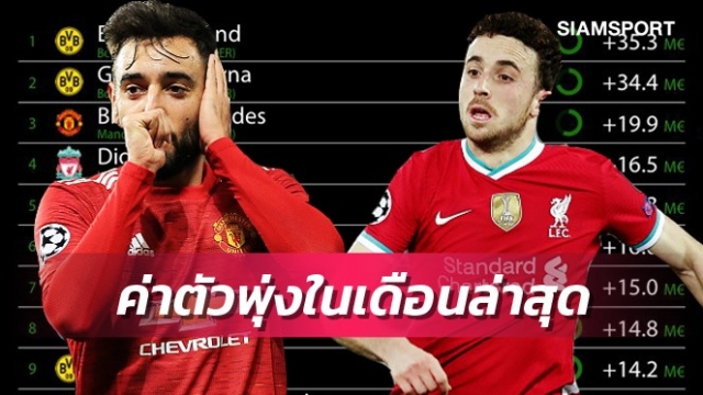 บรูโน่ แฟร์นันด์ส และ ดิโอโก้ โชต้า ติดท็อปโฟร์นักเตะค่าตัวประเมินเพิ่มขึ้นมากสุดรอบเดือน...
