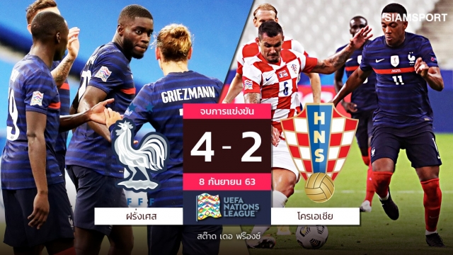 "ตราไก่" ฝรั่งเศส ย้ำชัยเหนือ โครเอเชีย ได้อีกครั้งหลังเช็กบิลด้วยสกอร์เดียวกับนัดชิงฯบอล...