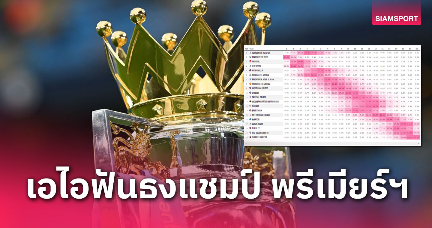 ออปตา บริษัทรวบรวมสถิติชื่อดัง นำ เอไอ ซูเปอร์คอมพิวเตอร์ มาวิเคราะห์แชมป์ พรีเมียร์ลีก ฤ...