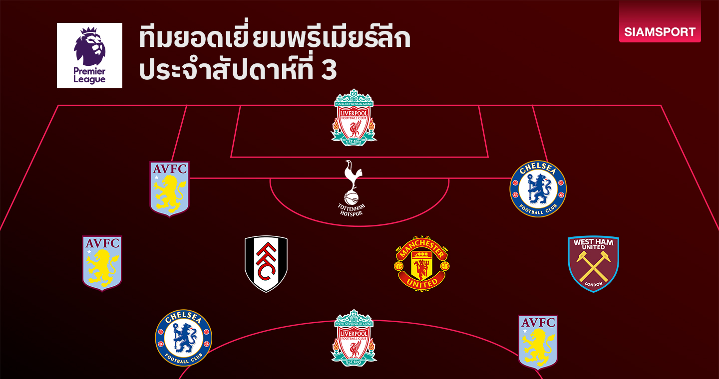 ทีมยอดเยี่ยม พรีเมียร์ลีก ประจำสัปดาห์ที่ 3 มีผู้เล่น แอสตัน วิลล่า ติดเข้ามามากที่สุด ตา...