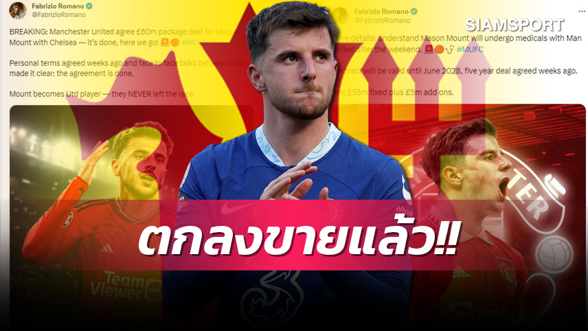 ถึงขณะนี้ แมนฯ ยูไนเต็ด เตรียมรอต้อนรับ เมสัน เมาท์ ย้ายมาเป็นมิดฟิลด์คนใหม่หลังจาก เชลซี...
