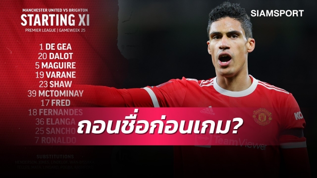 แมนเชสเตอร์ ยูไนเต็ด เผยเหตุผลที่ ราฟาแอล วาราน ถูกถอดออกจาก 11 ตัวจริงในแมตช์ปะทะ ไบรท์ต...